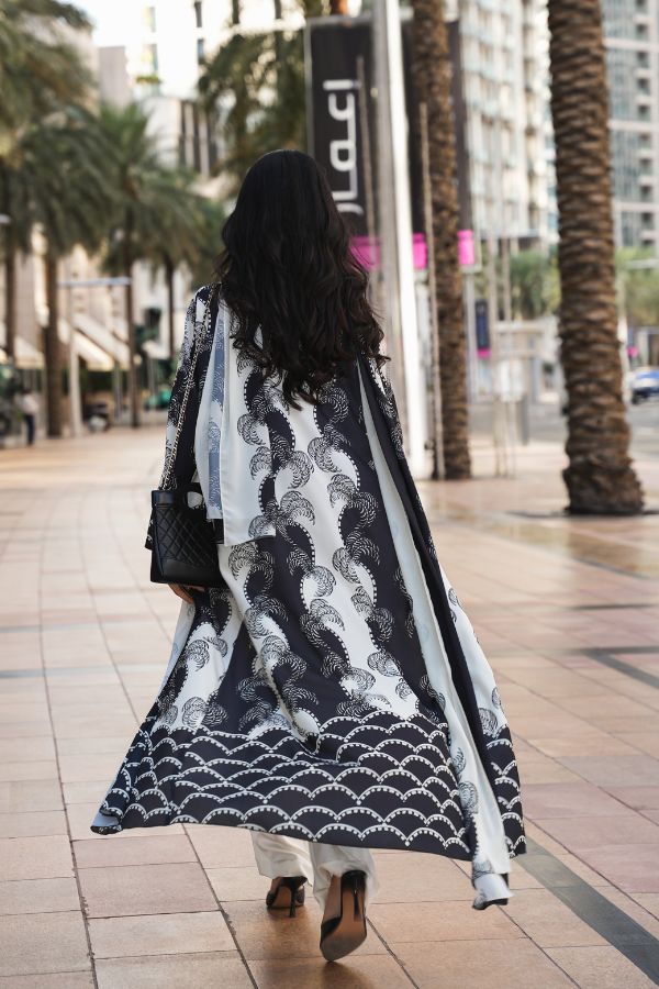 Information Abaya Fabric: soft crepe Abaya Color: black & white Sheila Included: Yes